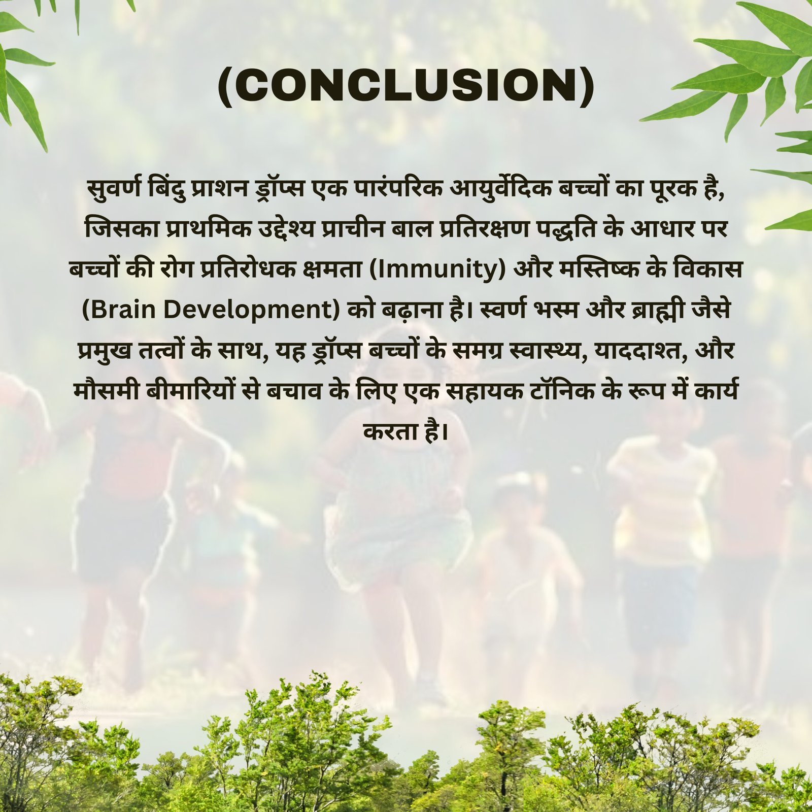 सुवर्ण बिंदु प्राशन ड्रॉप्स एक पारंपरिक आयुर्वेदिक बाल-टॉनिक है, जो बच्चों की प्रतिरोधक क्षमता, मस्तिष्क विकास और मौसमी बीमारियों से बचाव में महत्वपूर्ण भूमिका निभाता है। स्वर्ण भस्म और ब्राह्मी जैसे शक्तिशाली घटक इसे बच्चों के समग्र स्वास्थ्य के लिए एक उत्कृष्ट पूरक बनाते हैं।